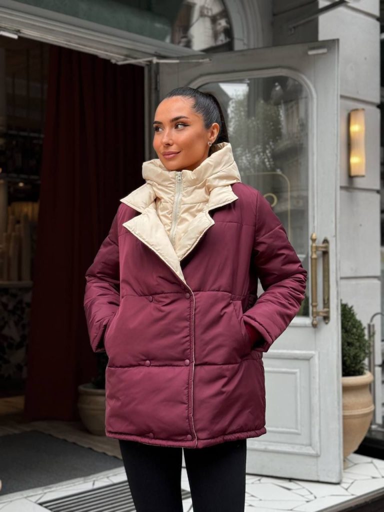 Куртка на змійці та кнопках, з поясом в комплекті. Рукав на манжеті. Капюшон повністю зʼємний разом із передньою вставкою.